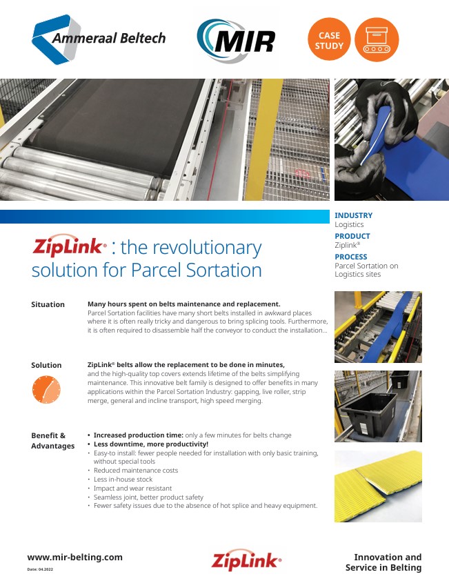 When production stops, costs rise fast. Introducing ZipLink® belts now available at MIR. This innovation belting solution makes installation and change-outs faster, easier and more reliable. This installation video series shows your team how to install and track a belt step by step-using only standard tools. No presses, No contractors, no wasted hours.