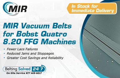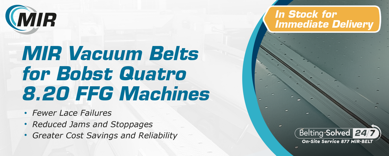 Contact your local MIR representative customerservice@mir-belting.com 877-MIR-BELT today to learn how the Bobst Quatro Vacuum Belt can improve your corrugated operations.